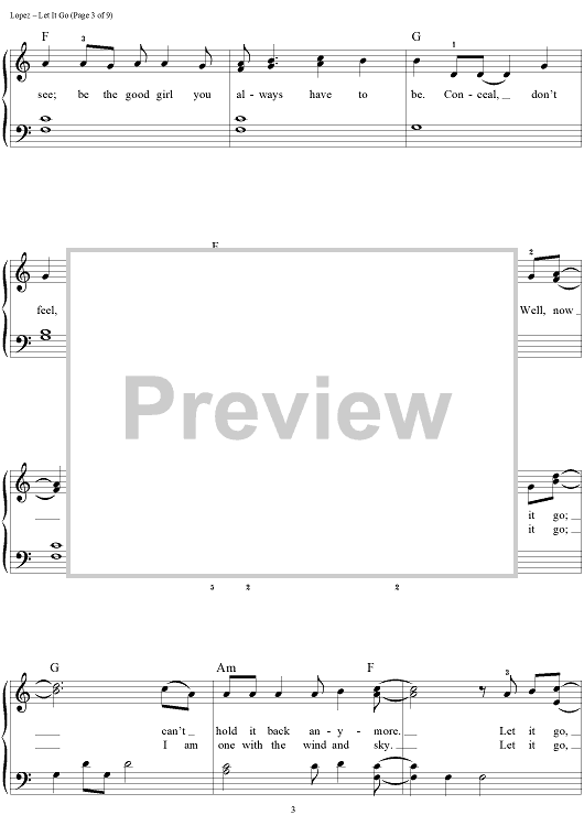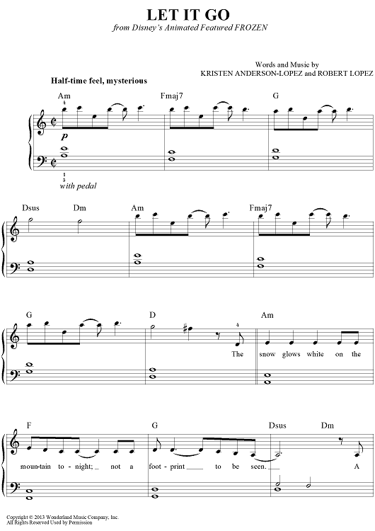 Digital Sheet Music for Let It Go by Robert Lopez, Kristen Anderson-Lopez, Idina Menzel scored for Easy Piano/Vocal/Chords; id:447327