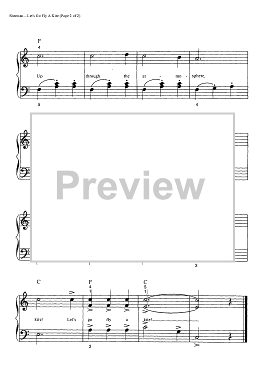 Digital Sheet Music for Let's Go Fly A Kite by Richard M. Sherman, Robert B. Sherman scored for Big Note Piano; id:445118
