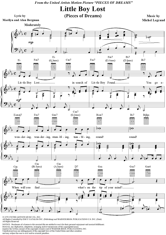Digital Sheet Music for Little Boy Lost by Michel LeGrand, Alan Bergman, Marilyn Bergman scored for Piano/Vocal/Chords; id:111524