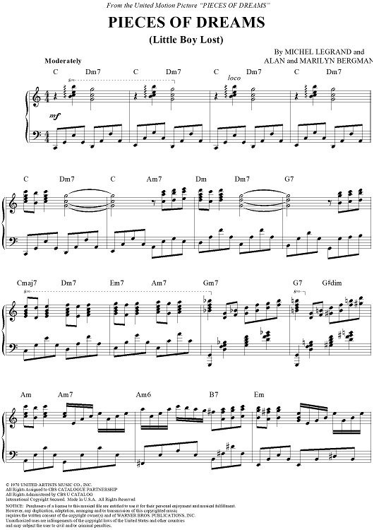 Digital Sheet Music for Little Boy Lost by Michel LeGrand, Alan Bergman, Marilyn Bergman scored for Piano Solo; id:120160