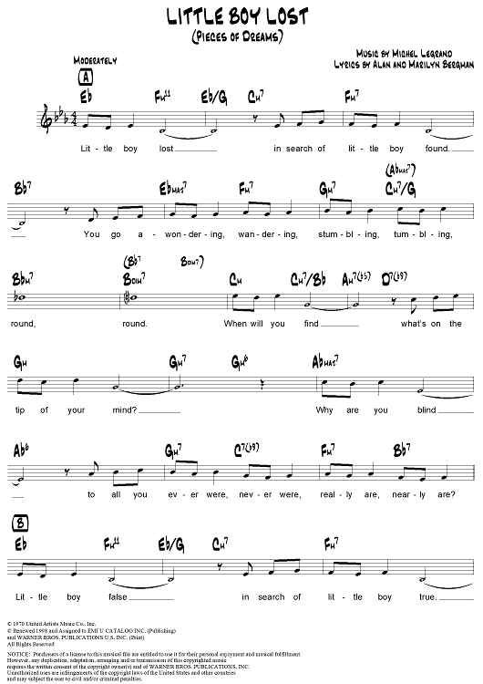 Digital Sheet Music for Little Boy Lost by Michel LeGrand, Alan Bergman, Marilyn Bergman scored for Lead Sheet; id:312233