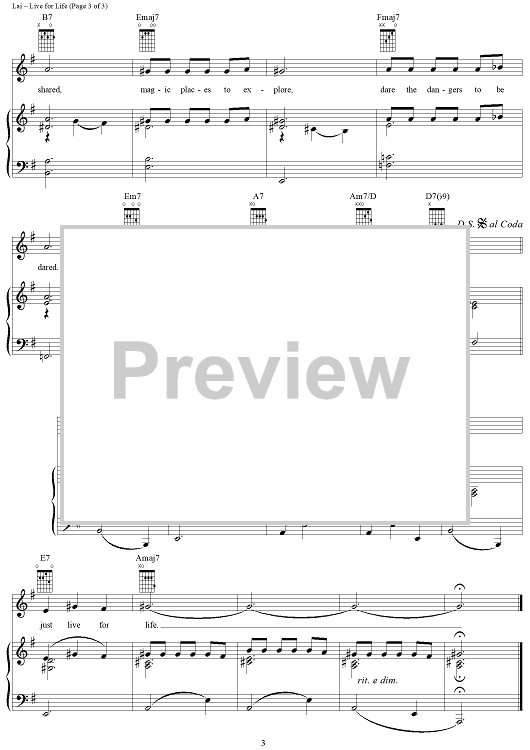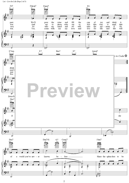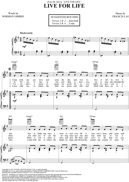 Digital Sheet Music for Live For Life by Norman Gimbel, Francis Lai scored for Piano/Vocal/Chords; id:250385