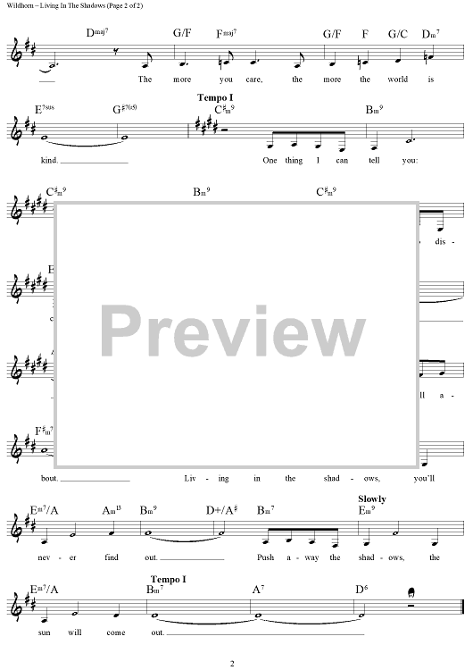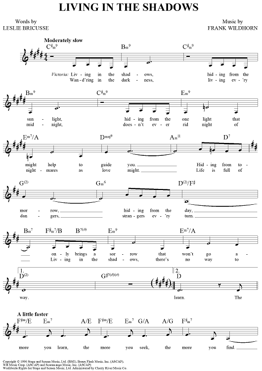 Digital Sheet Music for Living In The Shadows by Leslie Bricusse, Frank Wildhorn scored for Lead Sheet; id:460461