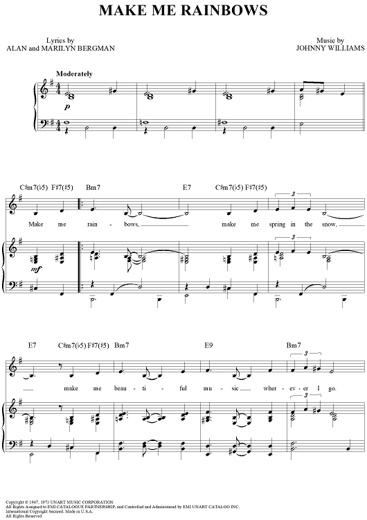 Digital Sheet Music for Make Me Rainbows by Alan Bergman, Marilyn Bergman, Johnny Williams scored for Piano/Vocal/Chords; id:141140