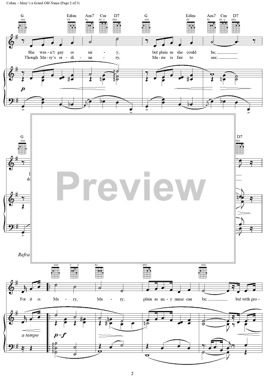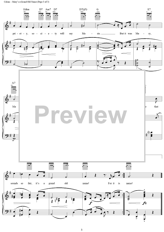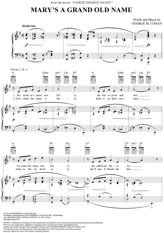 Digital Sheet Music for Mary's a Grand Old Name by George M Cohan scored for Piano/Vocal/Chords; id:272378