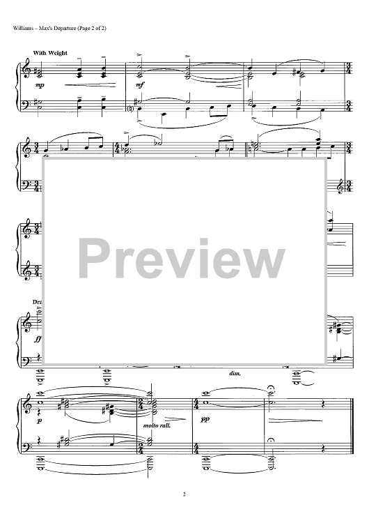Digital Sheet Music for Max's Departure by John Williams scored for Piano Solo; id:441981