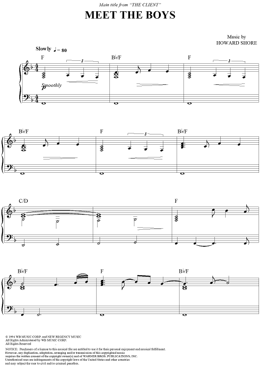 Digital Sheet Music for Meet the Boys by Howard Shore scored for Piano Solo; id:113875