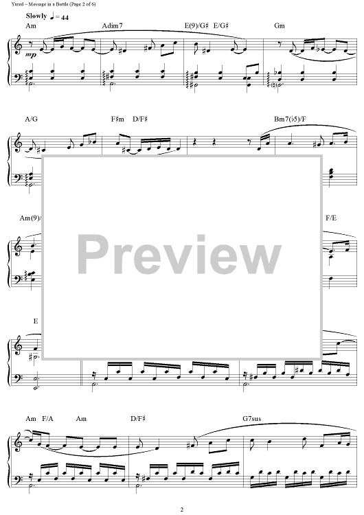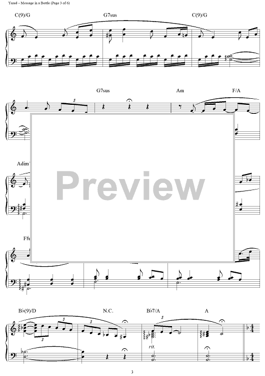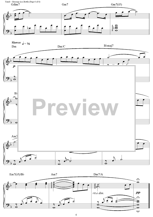 Digital Sheet Music for Message in a Bottle (Love Theme) by Gabriel Yared scored for Piano Solo; id:124190