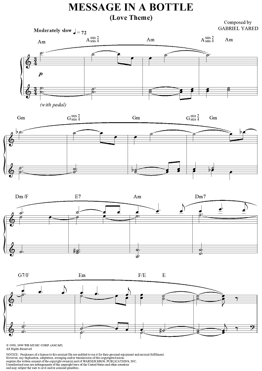 "Message in a Bottle (Love Theme)" Sheet Music by Gabriel Yared