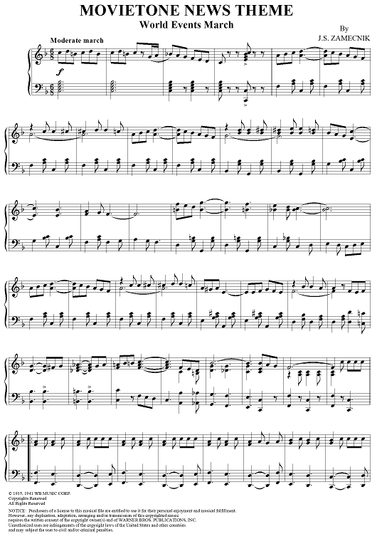 Digital Sheet Music for Movietone News Theme by J. S. Zamecnik scored for Piano Solo; id:305411