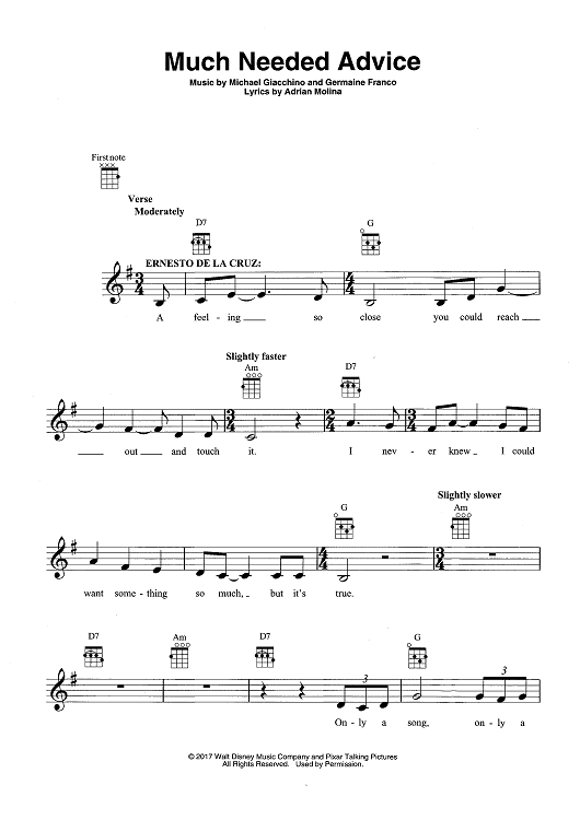 Digital Sheet Music for Much Needed Advice - from COCO by Michael Giacchino, Germaine Franco, Adrian Molina scored for Ukulele; id:466200