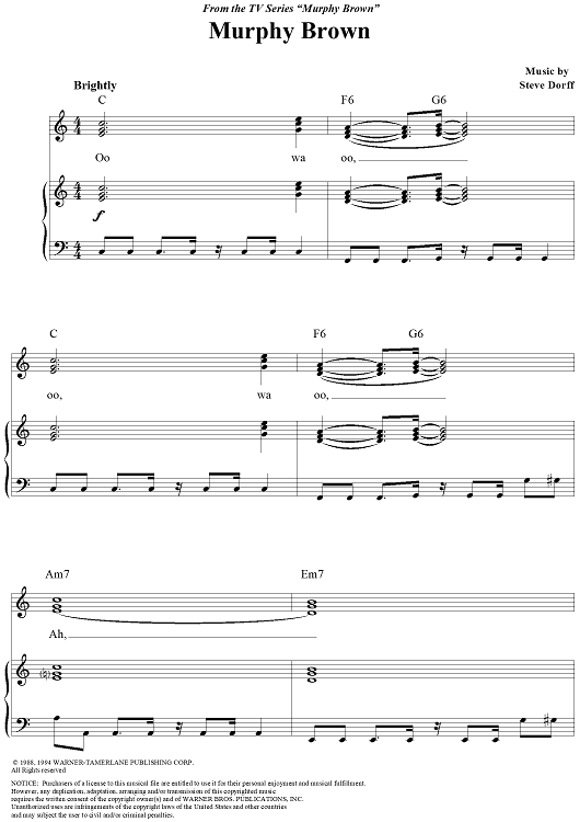 "Murphy Brown (Main Theme)" Sheet Music by Steve Dorff