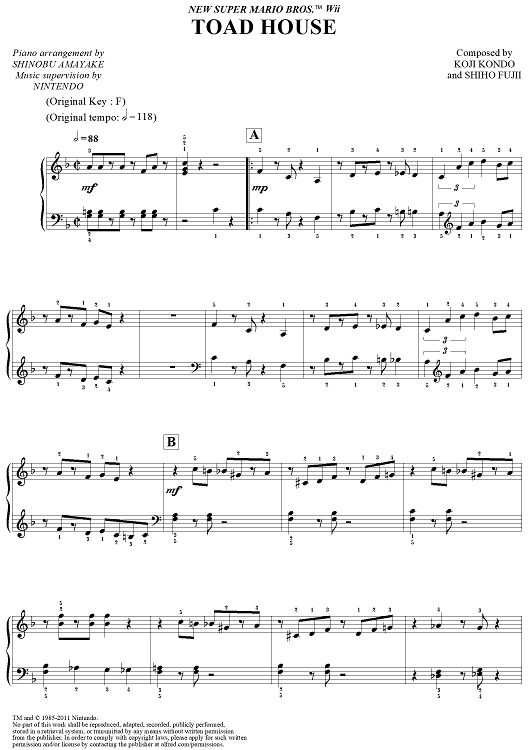 "New Super Mario Bros. Wii™: Toad House" Sheet Music by Koji Kondo