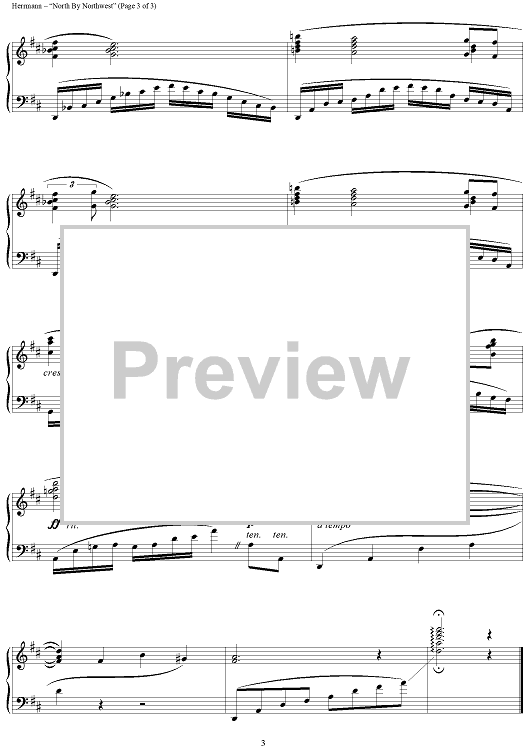 Digital Sheet Music for North by Northwest by Bernard Herrmann scored for Piano Solo; id:426767