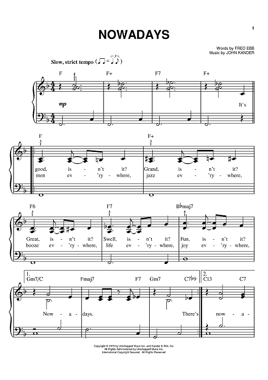 Digital Sheet Music for Nowadays by John Kander, Fred Ebb scored for Easy Piano; id:371593