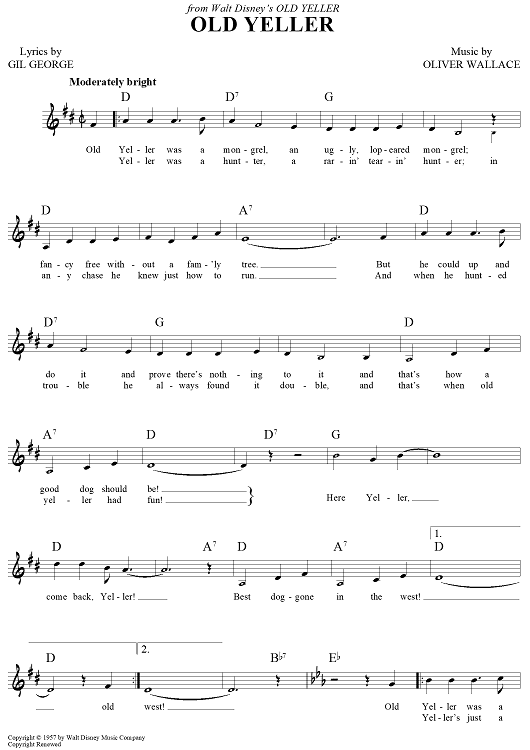 Digital Sheet Music for Old Yeller by Gil George, Oliver Wallace scored for Lead Sheet; id:443890