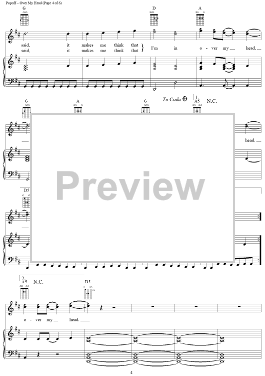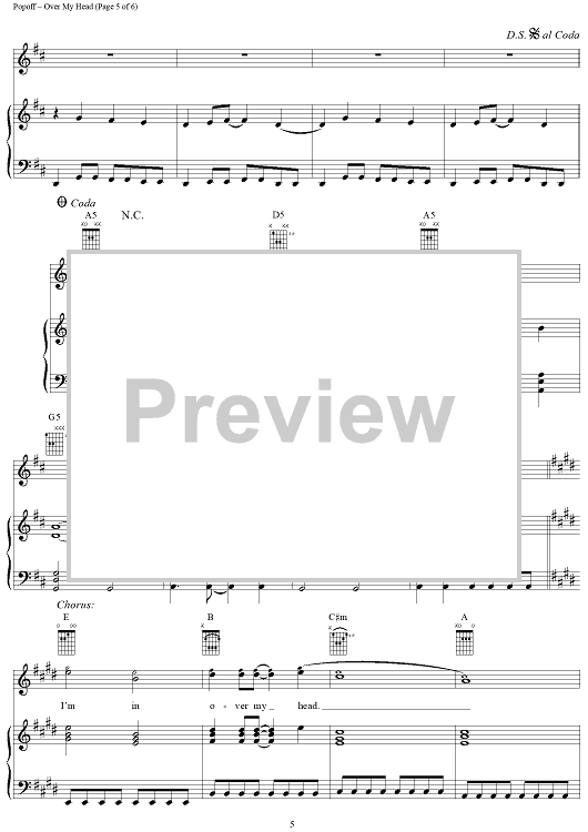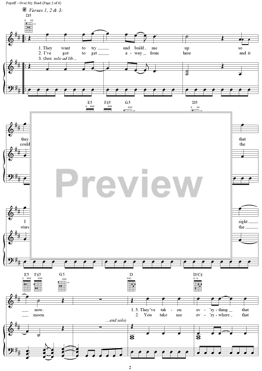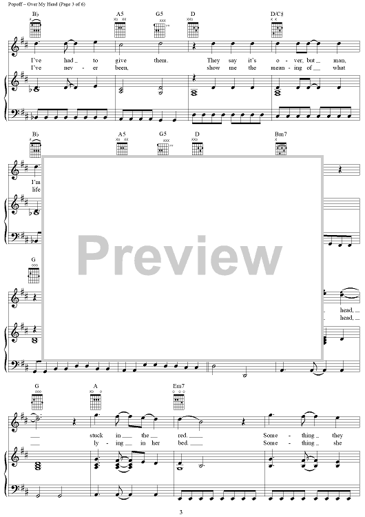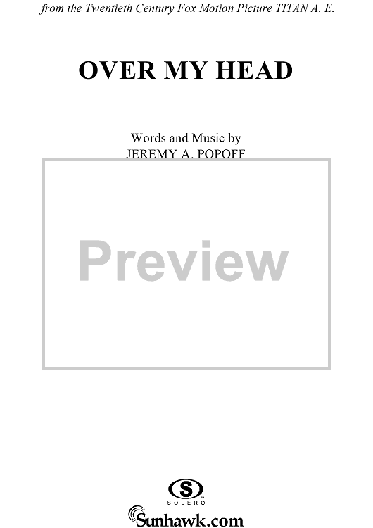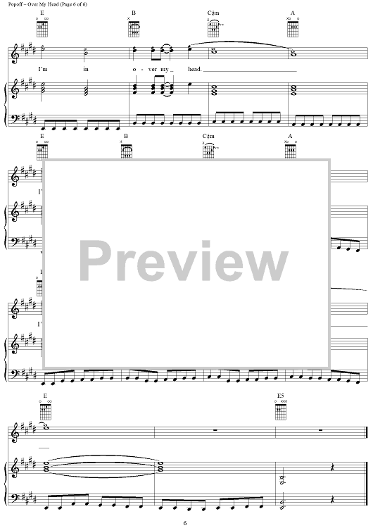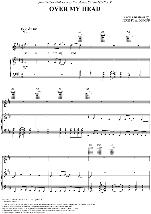 Digital Sheet Music for Over My Head by Lit, Jeremy A. Popoff scored for Piano/Vocal/Chords; id:241038