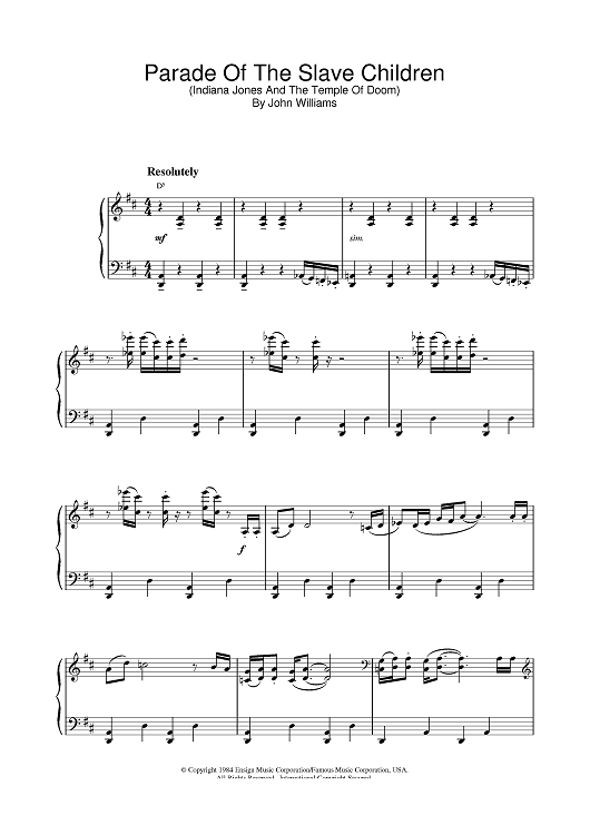 "Parade Of The Slave Children" Sheet Music by John Williams
