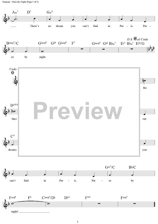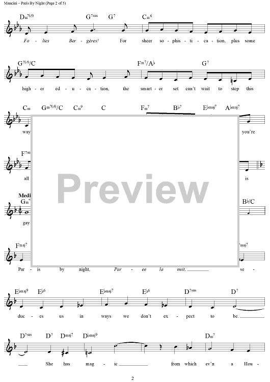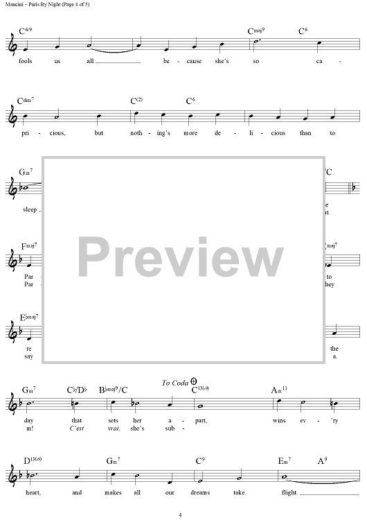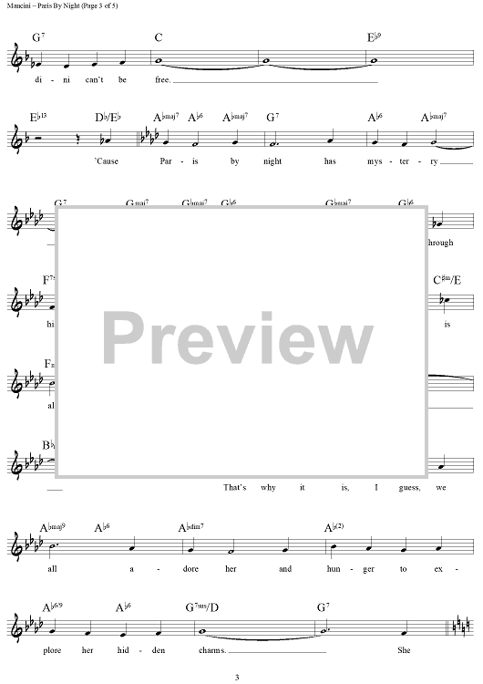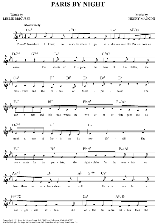 Digital Sheet Music for Paris By Night by Henry Mancini, Leslie Bricusse scored for Lead Sheet; id:460459