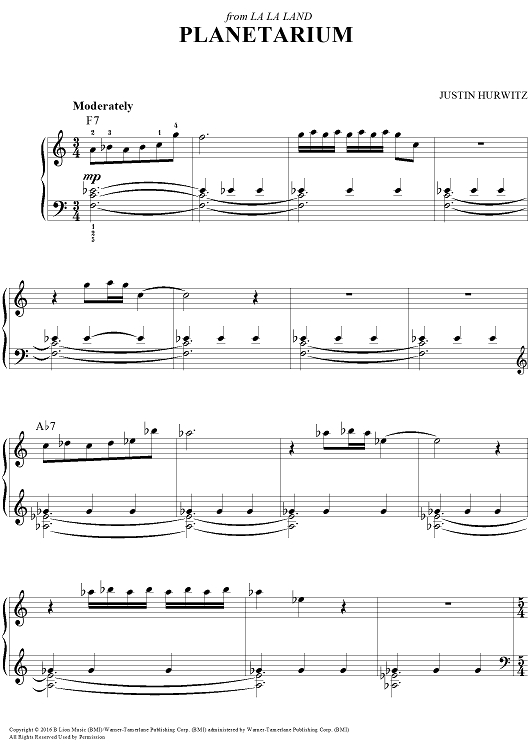 "Planetarium - from La La Land" Sheet Music by Justin Hurwitz