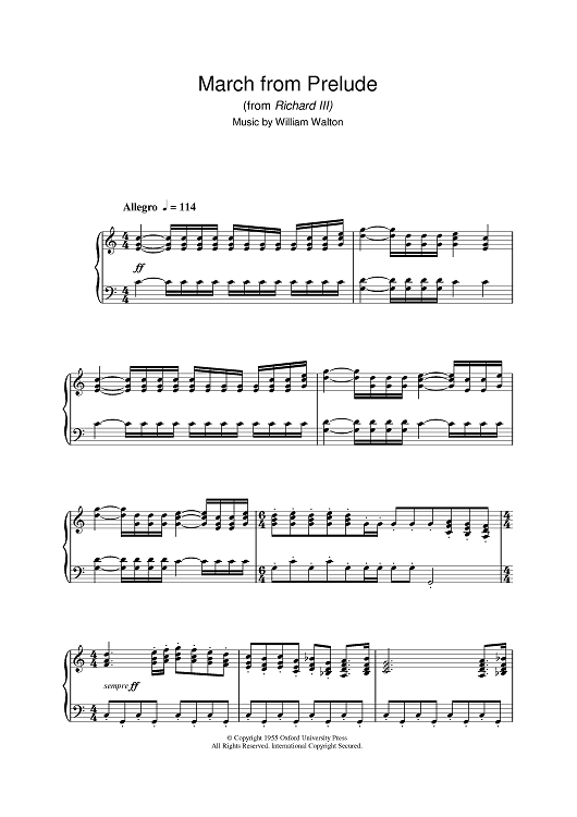Digital Sheet Music for Prelude (from Richard III) by William Walton scored for Piano; id:395944