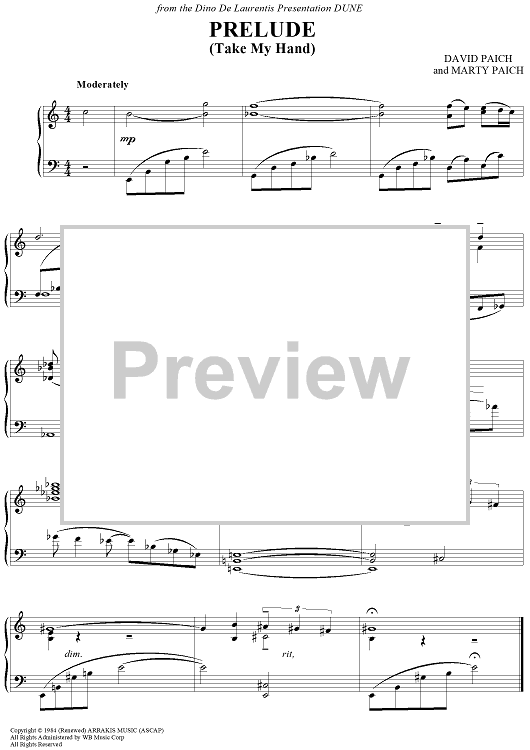 "Prelude (Take My Hand)" Sheet Music by David Paich