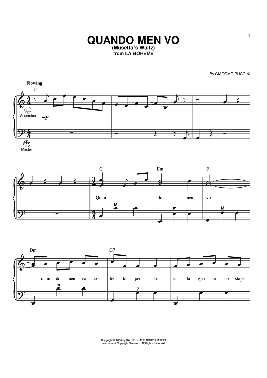 "Quando Men Vo (Mussetta's Waltz)" Sheet Music by Giacomo Puccini