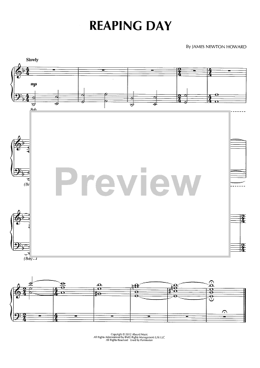 "Reaping Day" Sheet Music by James Newton Howard
