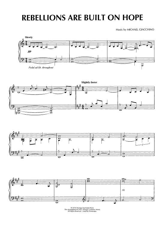 Digital Sheet Music for Rebellions Are Built On Hope - from Rogue One by Michael Giacchino scored for Piano Solo; id:465006