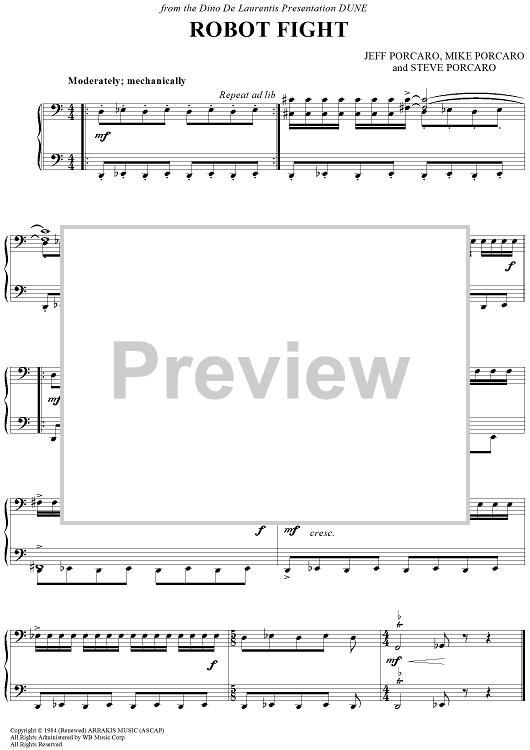 Digital Sheet Music for Robot Fight by Jeff Porcaro, Steve Porcaro, Mike Porcaro scored for Piano Solo; id:458360