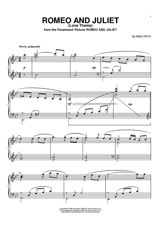 Digital Sheet Music for Romeo And Juliet (Love Theme) by Nino Rota scored for Piano; id:368815