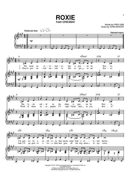 Digital Sheet Music for Roxie by John Kander, Fred Ebb scored for Piano/Vocal/Chords; id:370766