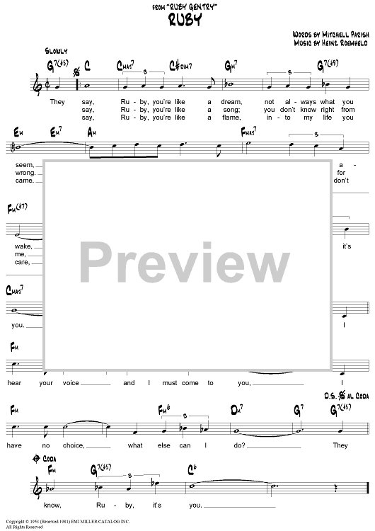 Digital Sheet Music for Ruby by Mitchell Parish, Ray Charles, Heinz Roemheld scored for Lead Sheet; id:290660