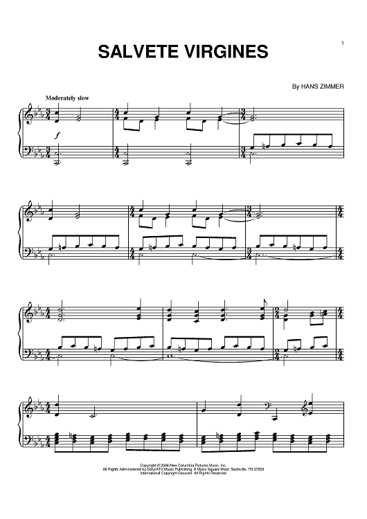 "Salvete Virgines" Sheet Music by Hans Zimmer