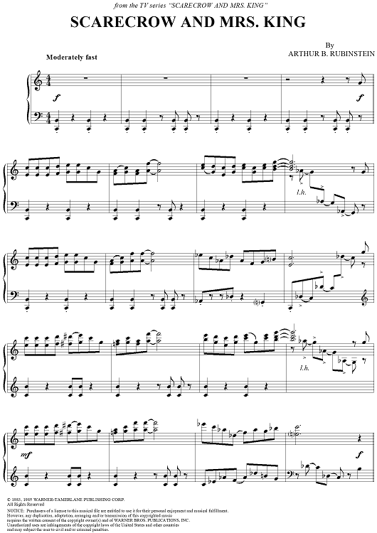 "Scarecrow and Mrs. King" Sheet Music by Arthur B. Rubinstein