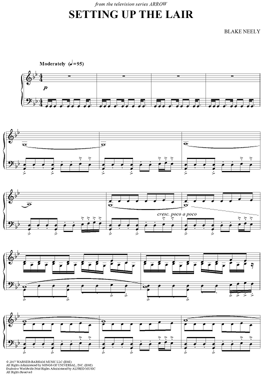 Digital Sheet Music for Setting Up The Lair by Blake Neely scored for Piano Solo; id:464108