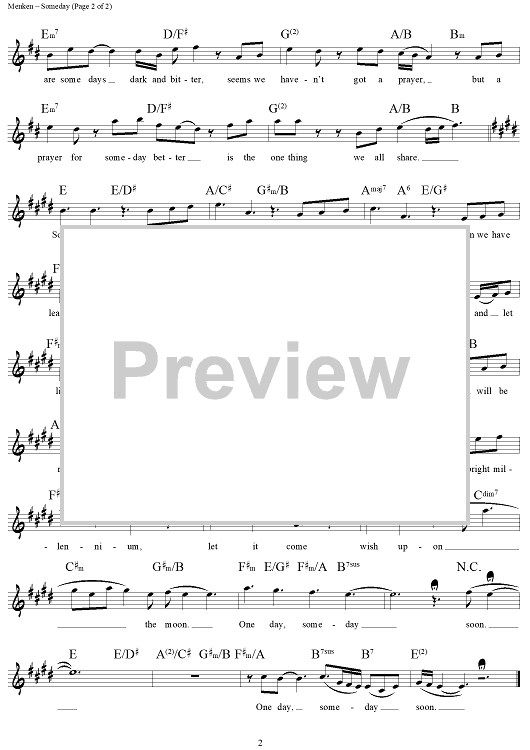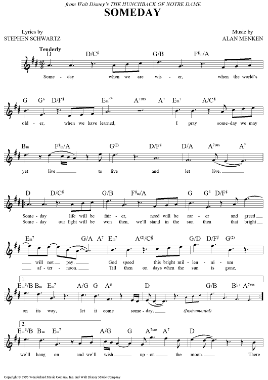 Digital Sheet Music for Someday by Alan Menken, Stephen Schwartz scored for Lead Sheet; id:444731