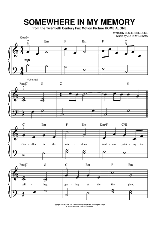 "Somewhere In My Memory" Sheet Music by Leslie Bricusse