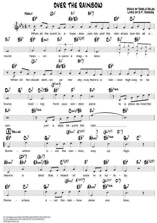 "(Somewhere) Over the Rainbow" Sheet Music by Judy Garland
