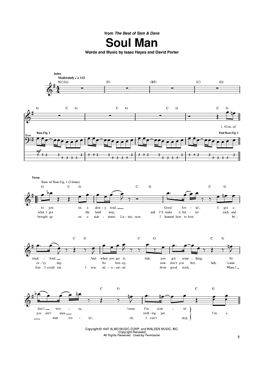 Digital Sheet Music for Soul Man by Isaac Hayes, David Porter, Sam & Dave, The Blues Brothers scored for Bass Tab; id:384114