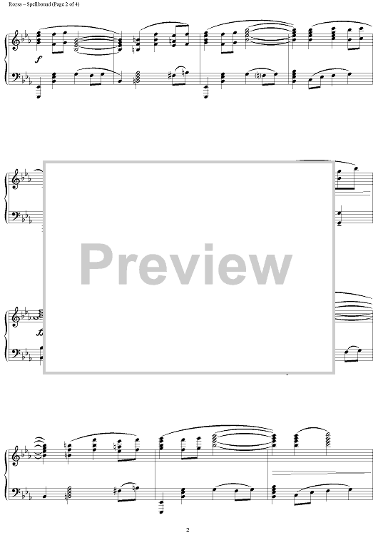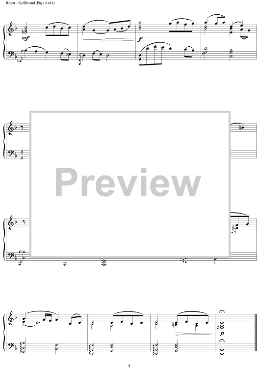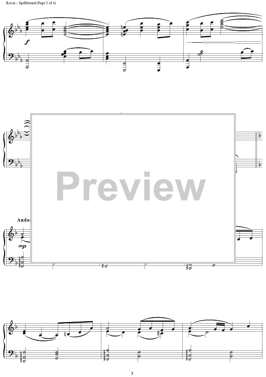 Digital Sheet Music for Spellbound (Main Title) by Miklos Rozsa scored for Piano Solo; id:456387