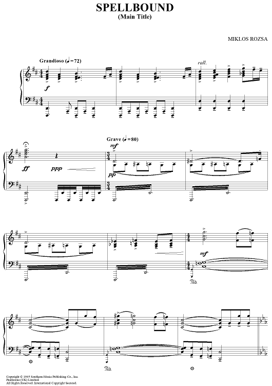 "Spellbound (Main Title)" Sheet Music by Miklos Rozsa