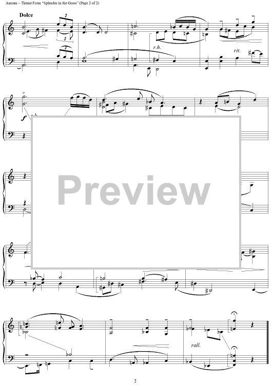 Digital Sheet Music for Splendor in the Grass (Main Theme) by David Amram scored for Piano Solo; id:113880