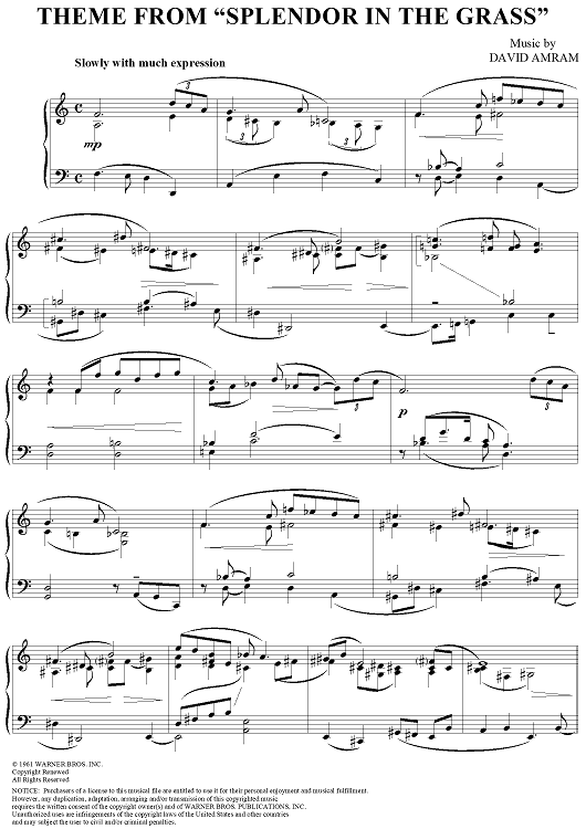 "Splendor in the Grass (Main Theme)" Sheet Music by David Amram