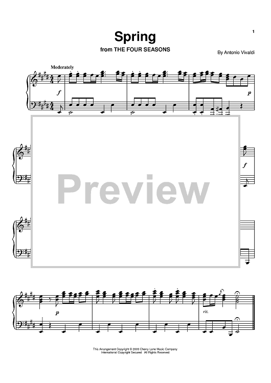Digital Sheet Music for Spring by Antonio Vivaldi scored for Piano; id:370418