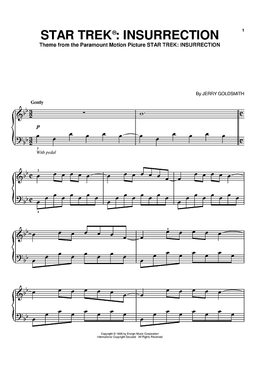 Digital Sheet Music for Star Trek(R) Insurrection by Jerry Goldsmith scored for Piano; id:367818