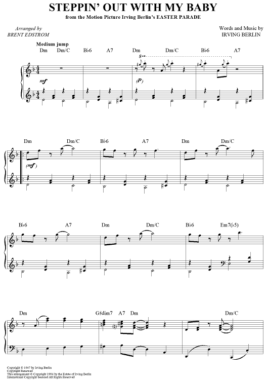 Digital Sheet Music for Steppin' Out With My Baby by Irving Berlin, Brent Edstrom scored for Piano Solo; id:465709