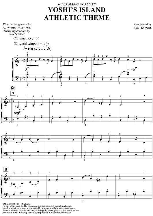 "Super Mario World 2™: Yoshi's Island Athletic Theme" Sheet Music by Koji Kondo