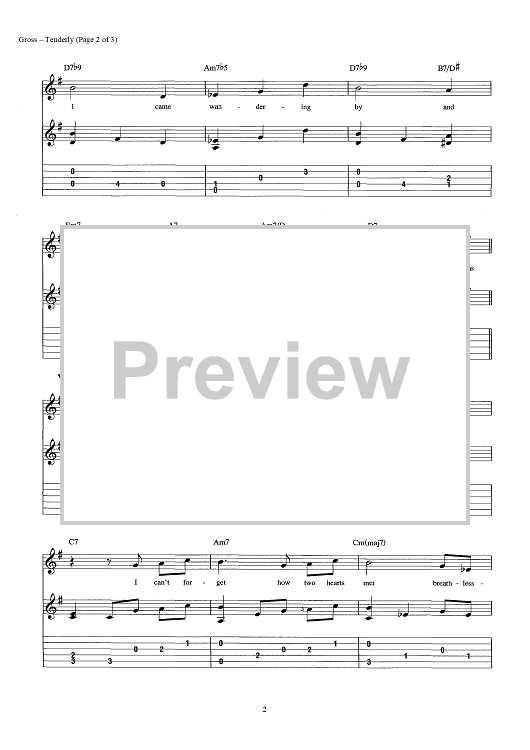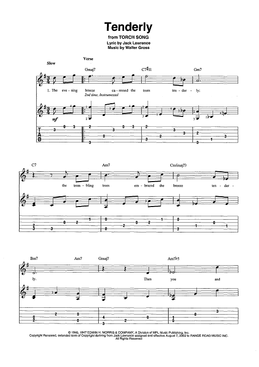 Digital Sheet Music for Tenderly by Jack Lawrence, Walter Gross scored for Guitar Tab/Vocal/Chords; id:443548