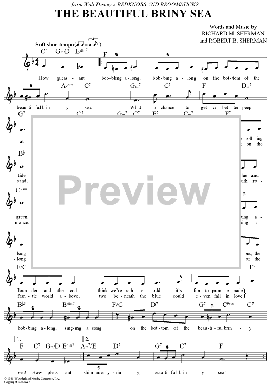 Digital Sheet Music for The Beautiful Briny Sea by Richard M. Sherman, Robert B. Sherman scored for Lead Sheet; id:439644